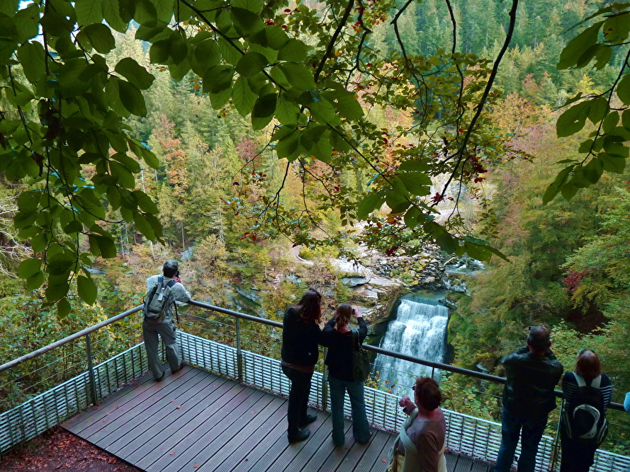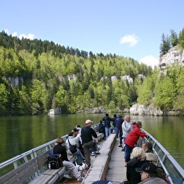 Déjeuner-croisière commentée sur les bassins du Doubs et découverte du Saut du Doubs : 14 km de croisières commentées aller et retour.  Les bateaux traversent les méandres du Doubs et le lac de Chaillexon avant de pénétrer au cœur des canyons. Glissant paisiblement au fil de l'eau, vous apprécierez l'exceptionnelle beauté des falaises abruptes et sauvages des Gorges du Doubs. Une escale à la chute vous permettra d'accéder aux belvédères dominant le Saut du Doubs, chute de 27 mètres.
