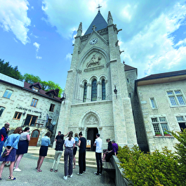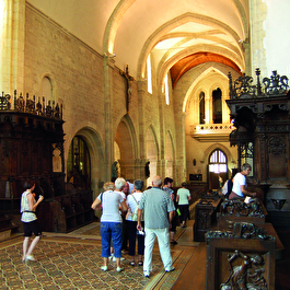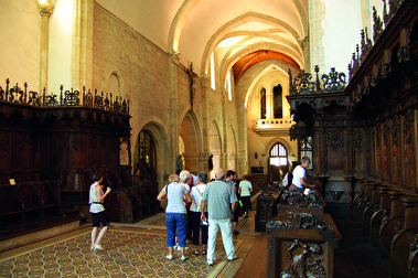 Montbenoît, la capitale de cette république : visite guidée de l’Abbaye, splendide ensemble religieux médiéval présente par son cadre, son histoire et ses vestiges architecturaux un intérêt majeur. Fondée au XIIe siècle, on découvre l'église dont la sobre nef du XIIe contraste avec le chœur du XVIe couvert d'une voûte flamboyante et richement orné, dénotant l'influence de la Renaissance italienne, le vaste cloître des XIIème et XVème siècles, mais aussi la cuisine voûtée avec son imposante cheminée ou les petites portes qui mènent aux cachots ou aux oubliettes. Dans l'église, les 26 stalles en bois sculpté, toutes différentes, sont particulièrement remarquables.