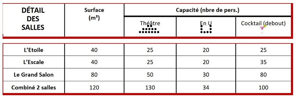 • Wifi, vidéoprojecteur, TV, micro HF, écran, paperboard